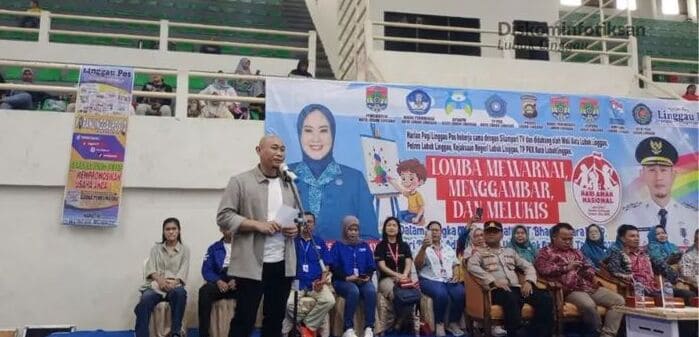 LUBUK LINGGAU-Wali Kota Lubuk Linggau, H Rachmat Hidayat membuka secara resmi kegiatan Lomba Mewarnai Menggambar dan Melukis Tingkat Pelajar dalam rangka memperingati HUT Bhayangkara, Hari Bhakti Adhyaksa dan Hari Anak Nasional di Taman Olahraga Megang (TOM) Kota Lubuk Linggau, Sabtu (26/7/2025)